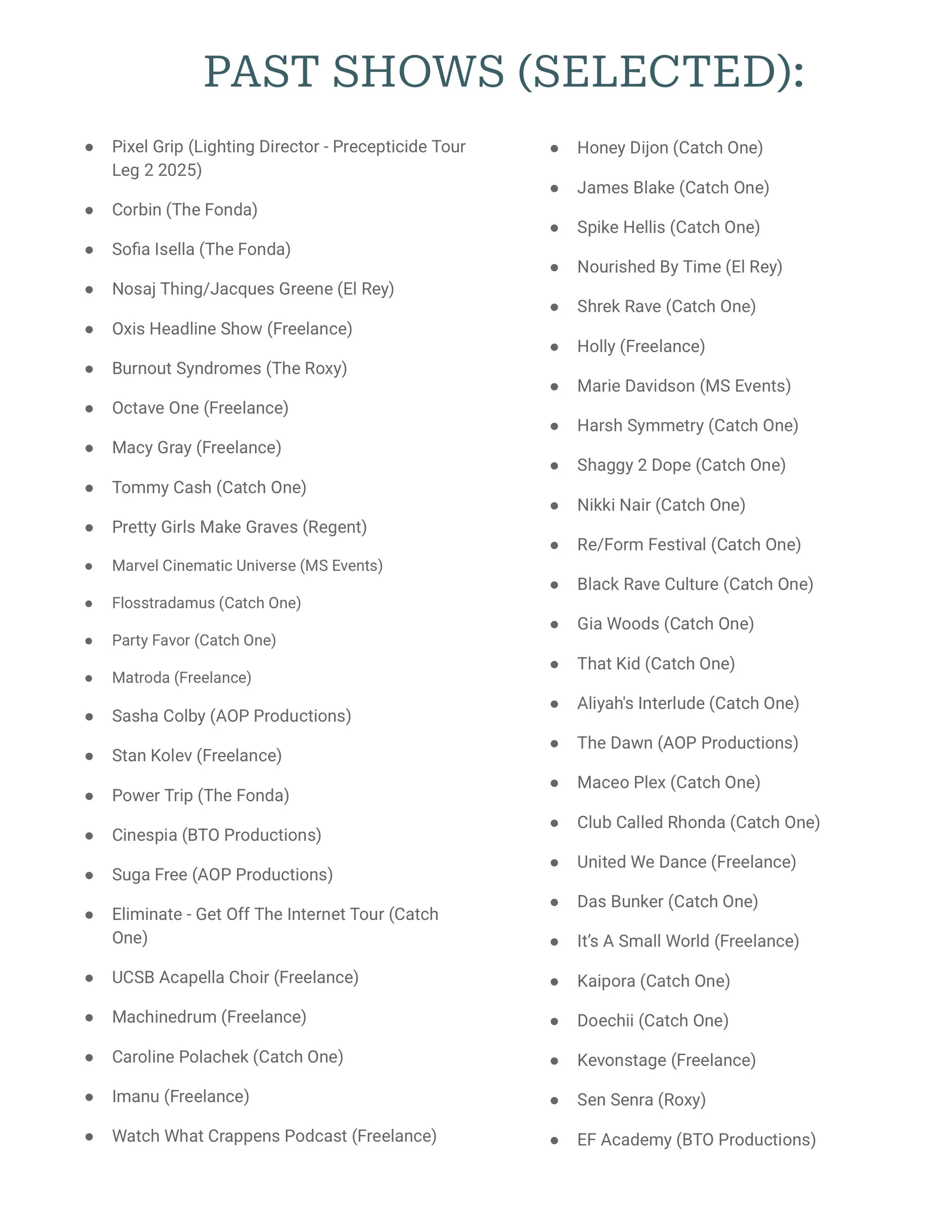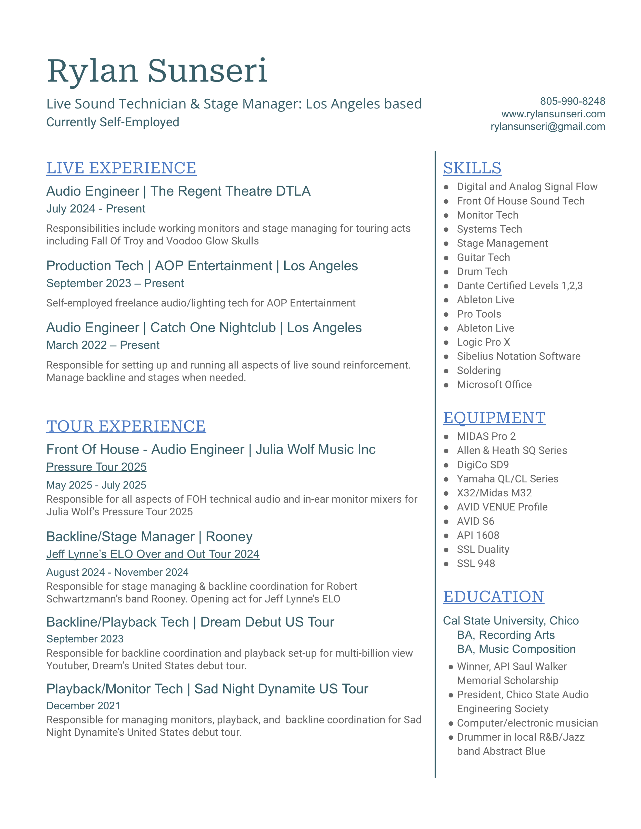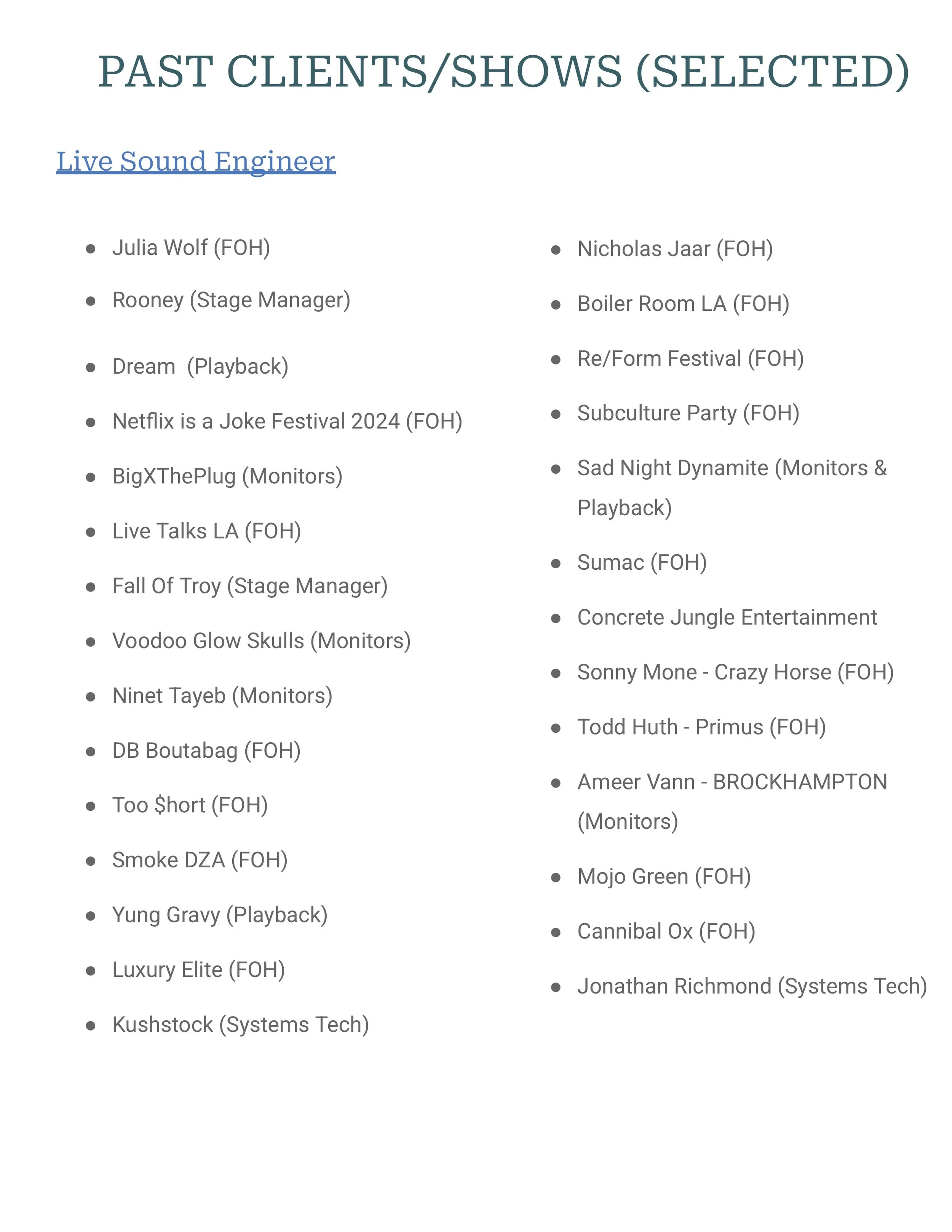 Live Sound Resume