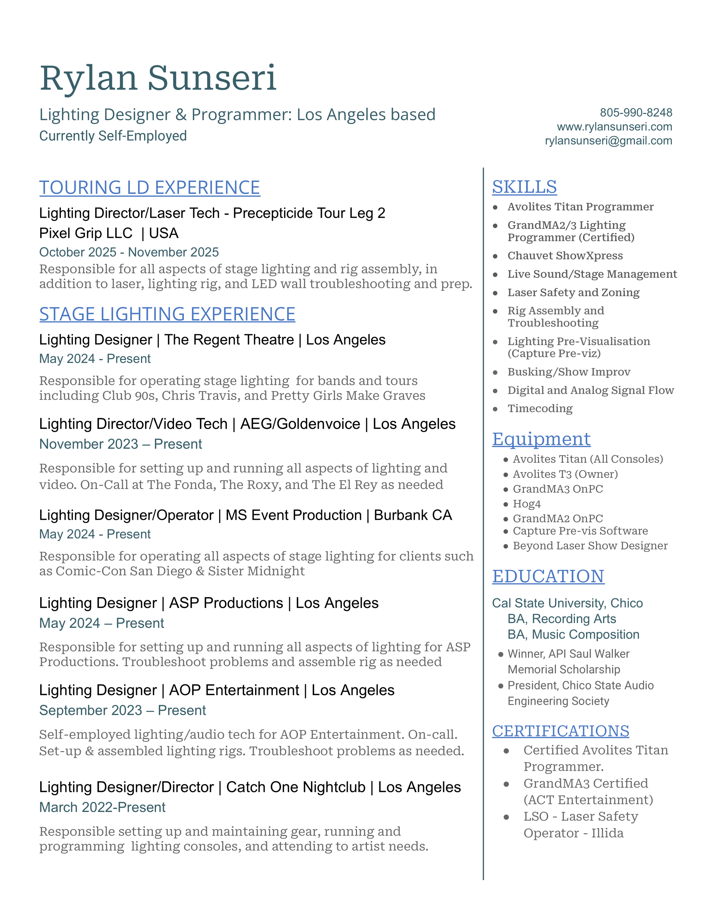 Stage Lighting Resume