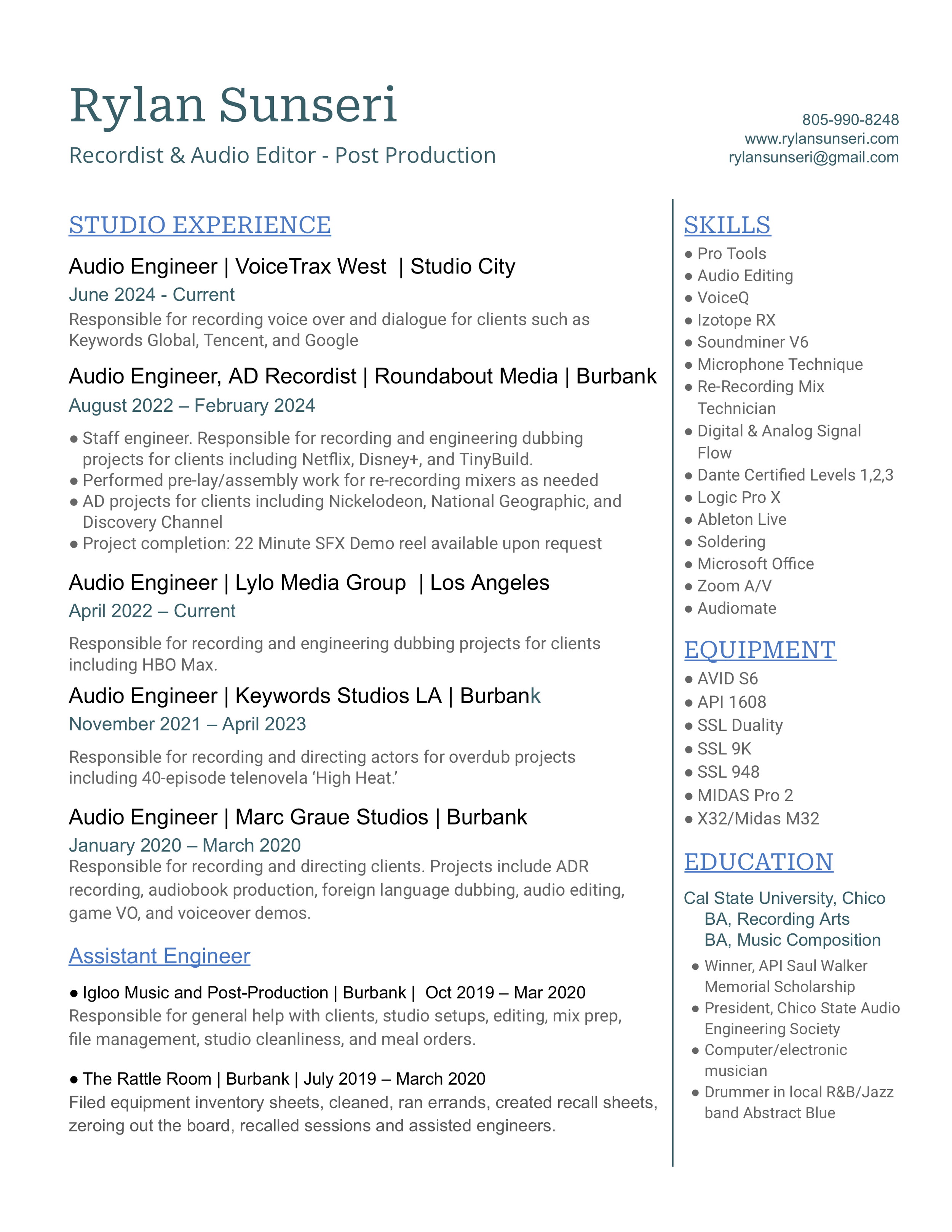 Post-Production Resume